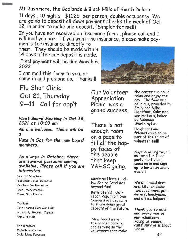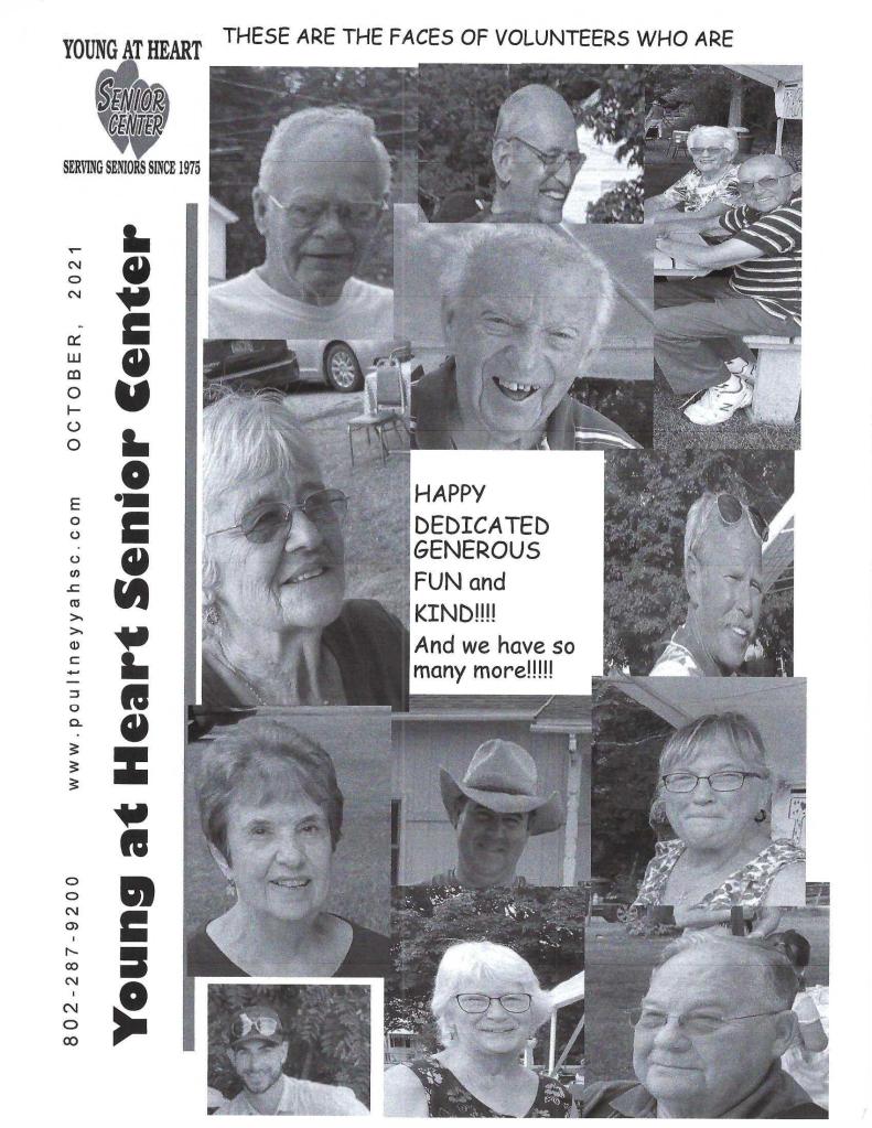 Anyone willing to join us for a fun-filled party next year, come on in and sign up to have fun every week!! We still need drivers, kitchen assistants, servers, gardeners, handypeople, and office helpers!! THANK YOU to every one of our volunteers. Young at Heart can’t survive without YOU!!!