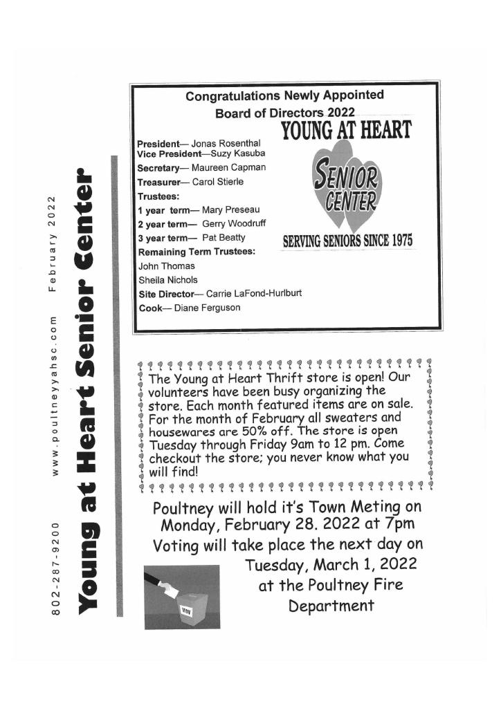 Voting will take place the next day on Tuesday, March 1, 2022 at the Poultney Fire Department.